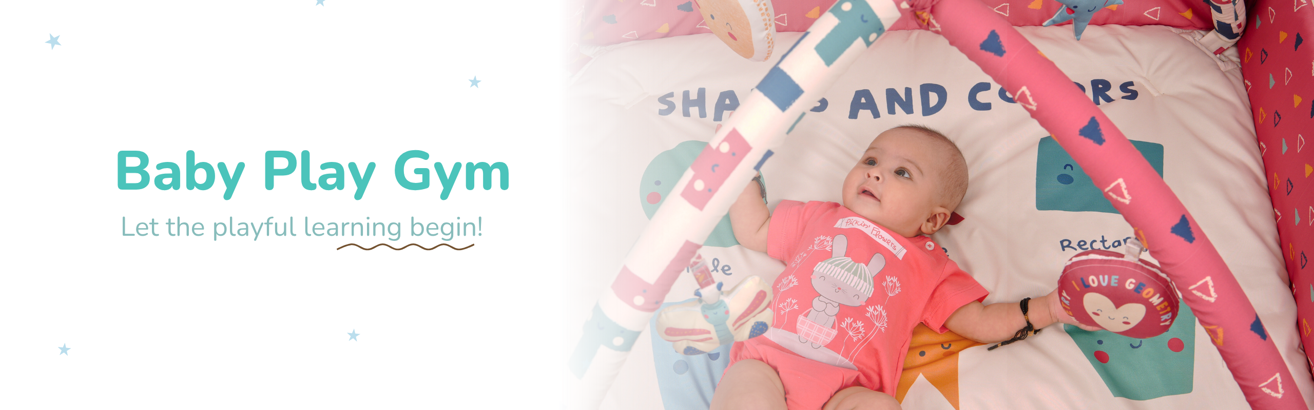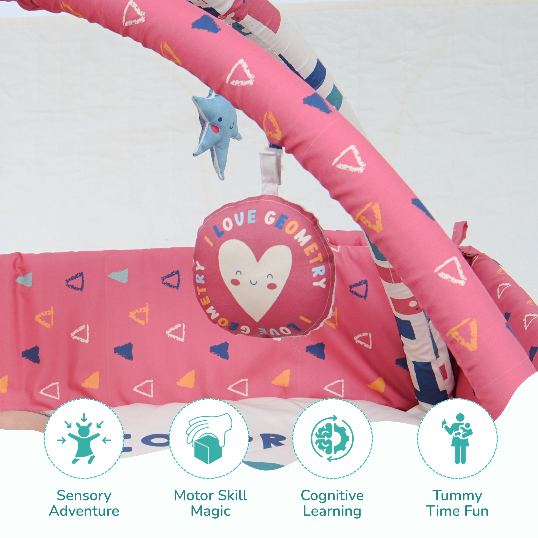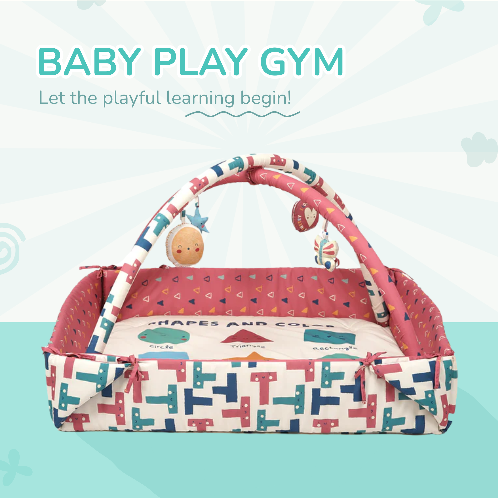 Baby Play Gym | 4 Detachable Toys | Happy Shapes