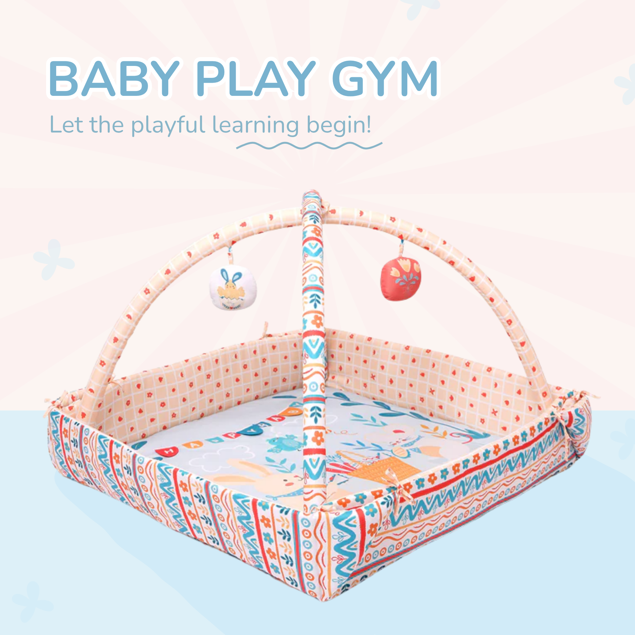 Baby Play Gym | 4 Detachable Toys | Happy Shapes