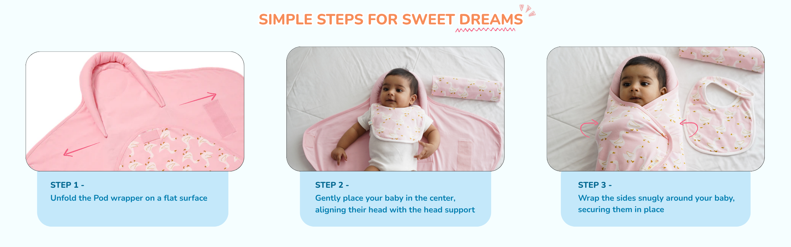 Pod Wrapper is a soft, cocoon-style wrap designed to gently hug your newborn and give the cozy feel of the womb. It keeps your baby snug, warm, and secure during bedtime.